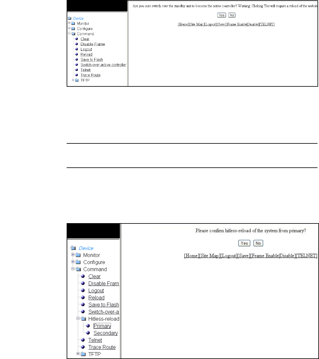 2. Click Yes to switch the standby module to become an Active Controller or click No to cancel the