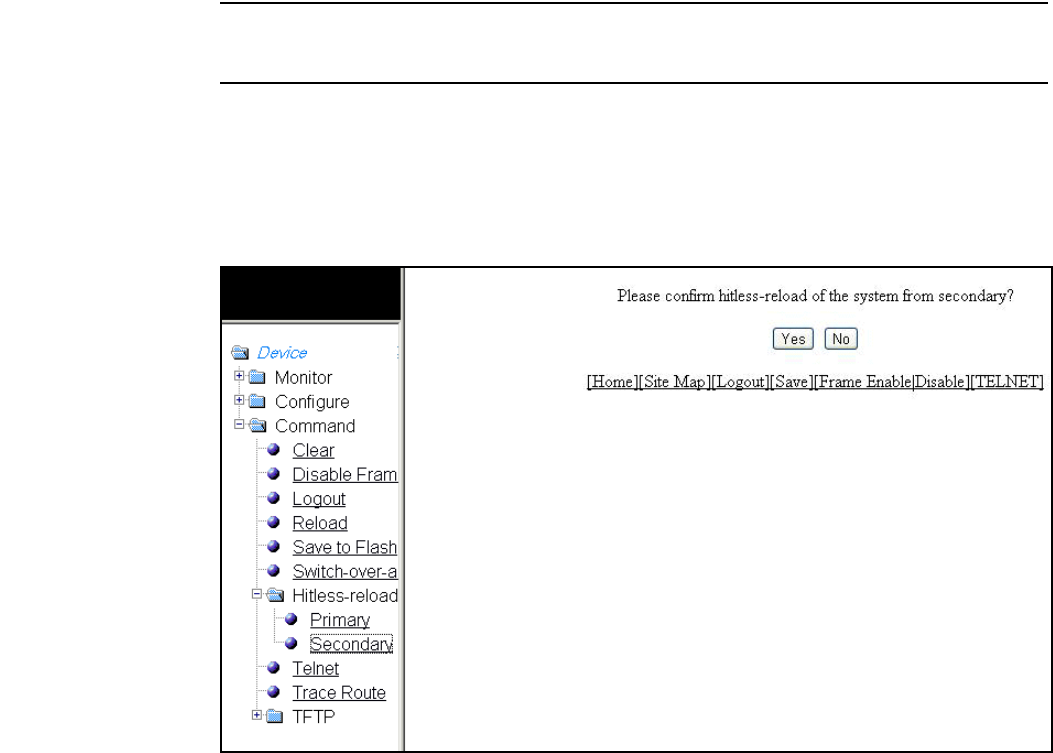 The secondary hitless-reload window is displayed as shown in Figure 225.