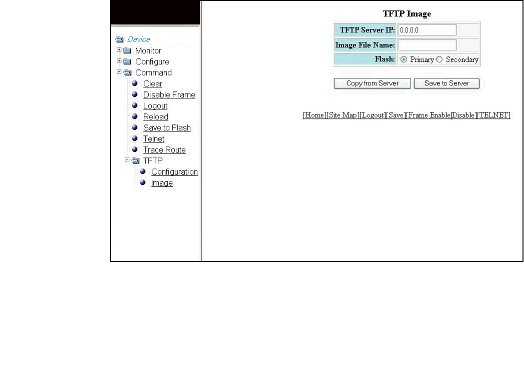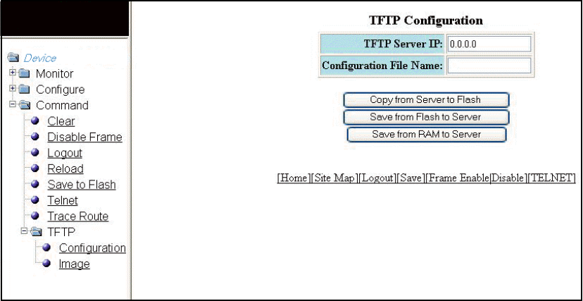 •Click Save from Flash to Server to save the file from the device flash memory to a TFTP