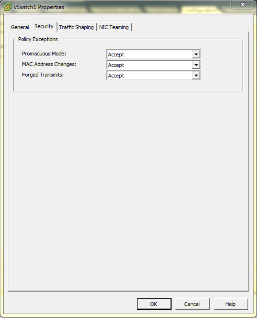 • Enable Promiscuous mode in vSwitch Config.