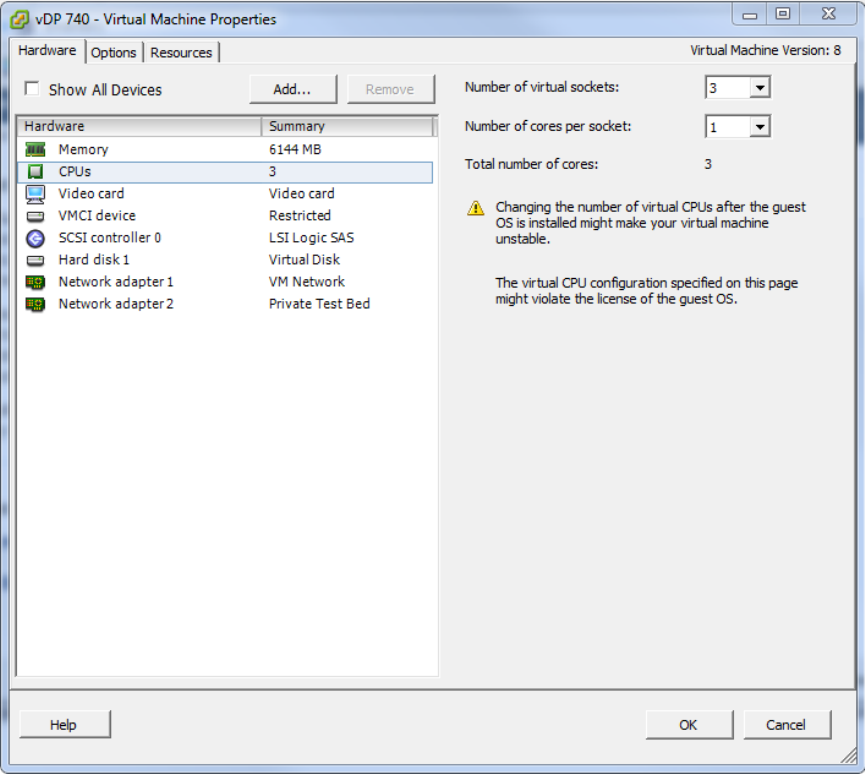 • After the vSZ-D instance is ready, modify the number of CPU cores (if needed) before powering on vSZ-D.