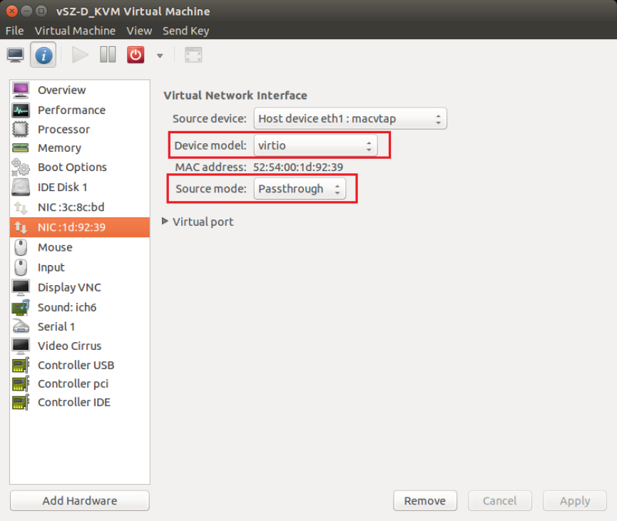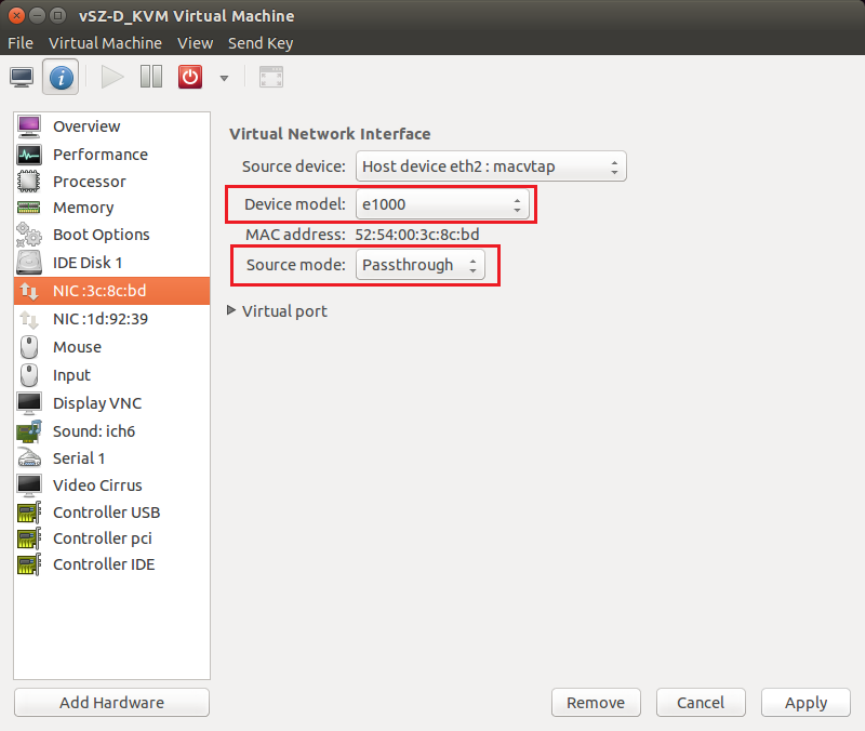 •Source mode: Either Bridge or Passthrough if you are using macvtap for the device type.