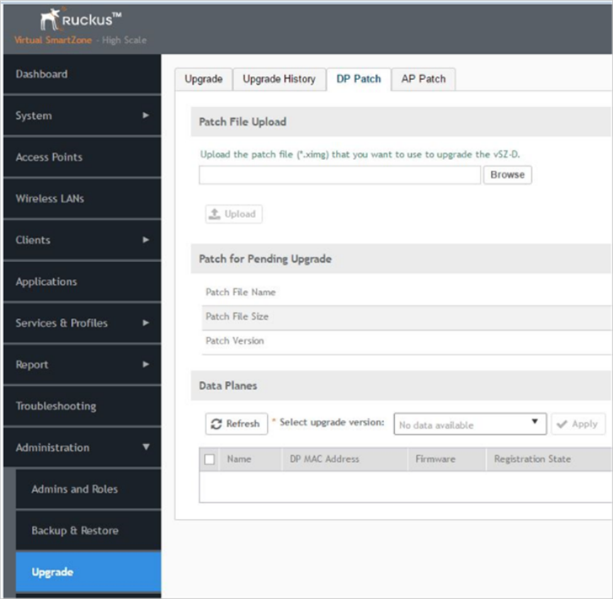 • Go to Controller web interface > Administration > Upgrade to view a confirmation message that the data plane firmware