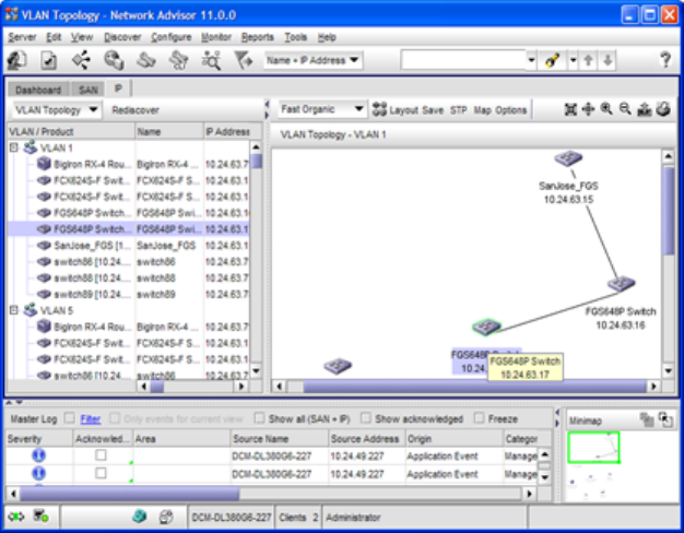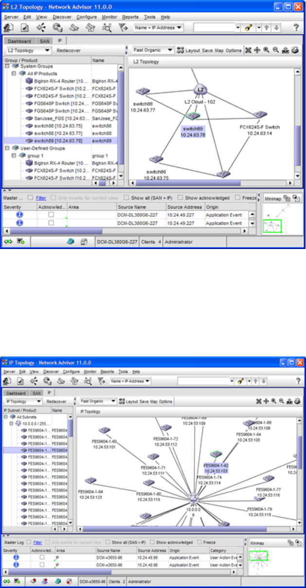 - IP Topology, L2 Topology, Ethernet and VLAN Topology Connectivity Maps