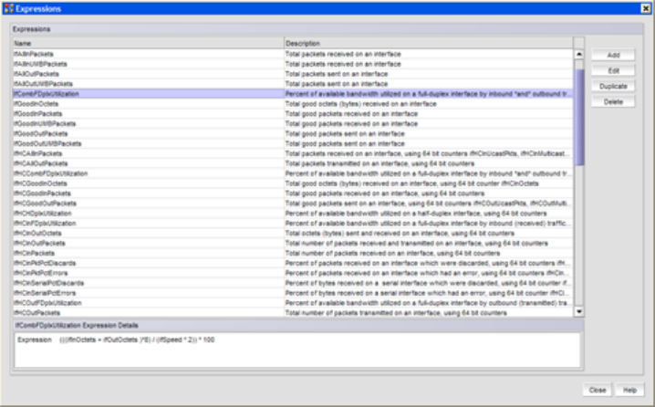 Brocade Network Advisor ships with predefined expressions, but users can add, edit, duplicate, and delete expressions.