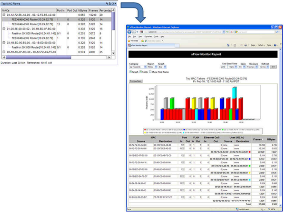 FIGURE 81 Drill down action to a sFlow report from a top flow monitor