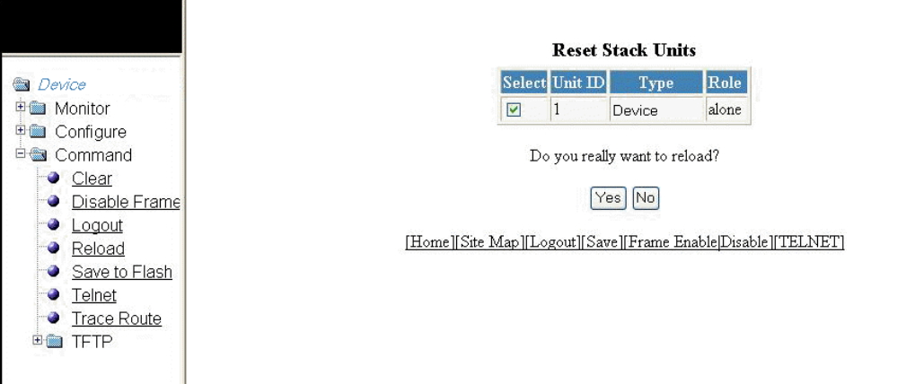 3. Click Yes to reload the system from the primary image or click No to cancel the operation.
