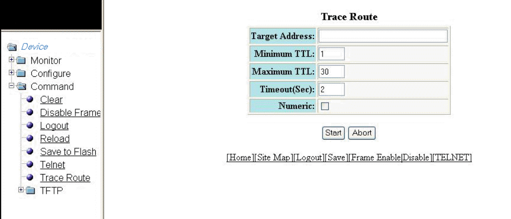 1. Click Command on the left pane and select Trace Route .