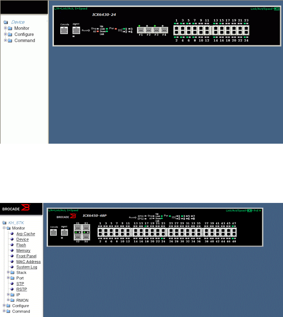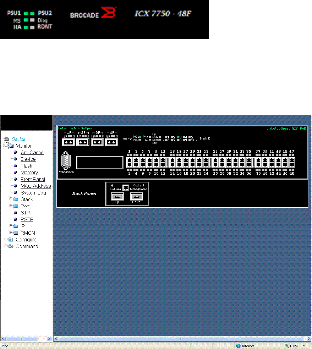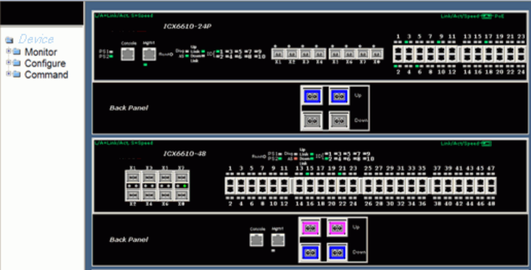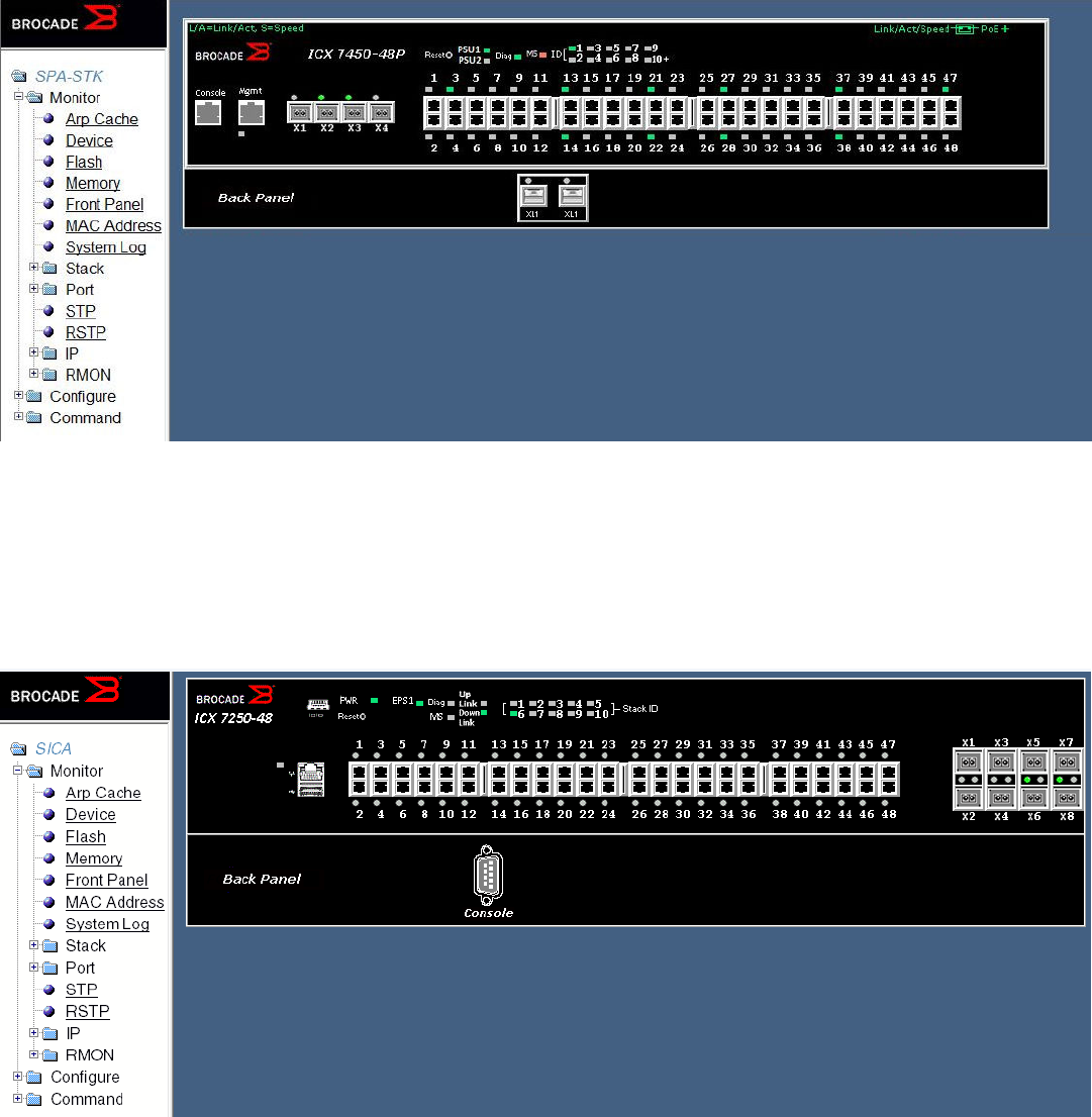 - Displaying the front panel for the Brocade FCX devices
