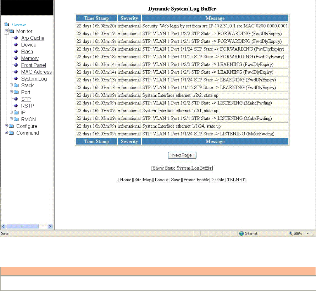 - Displaying the system log