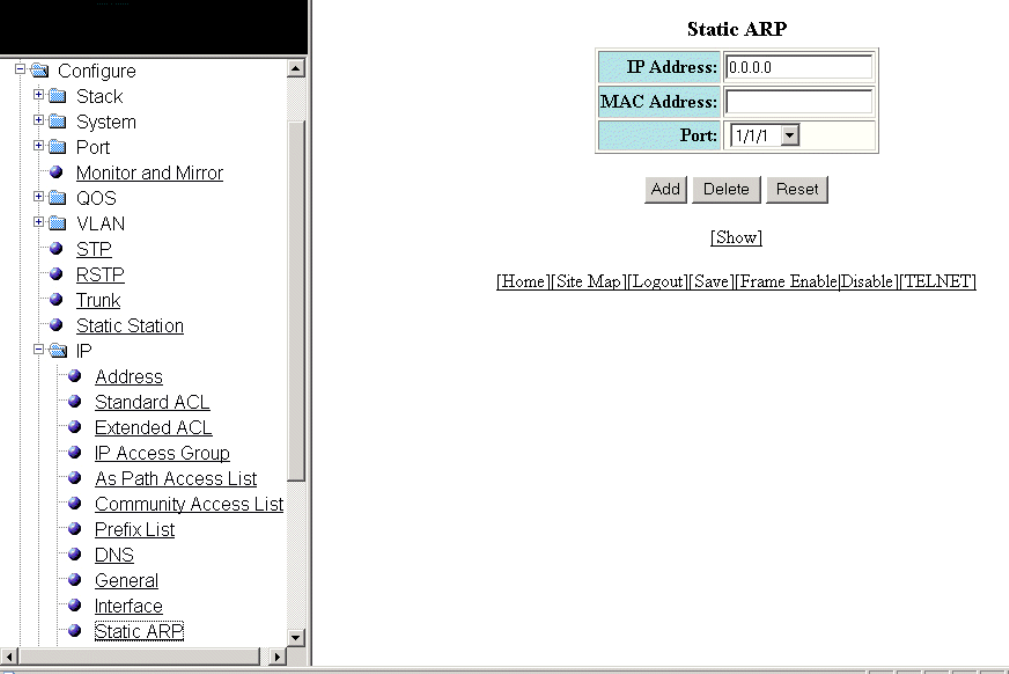 - Configuring a static ARP