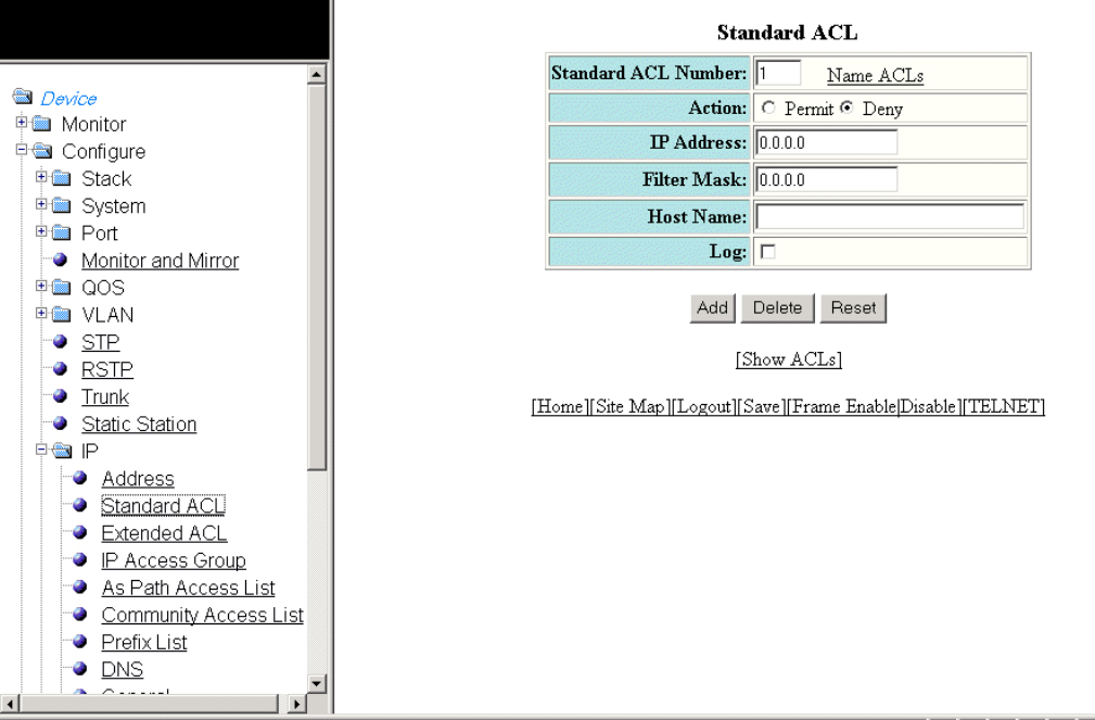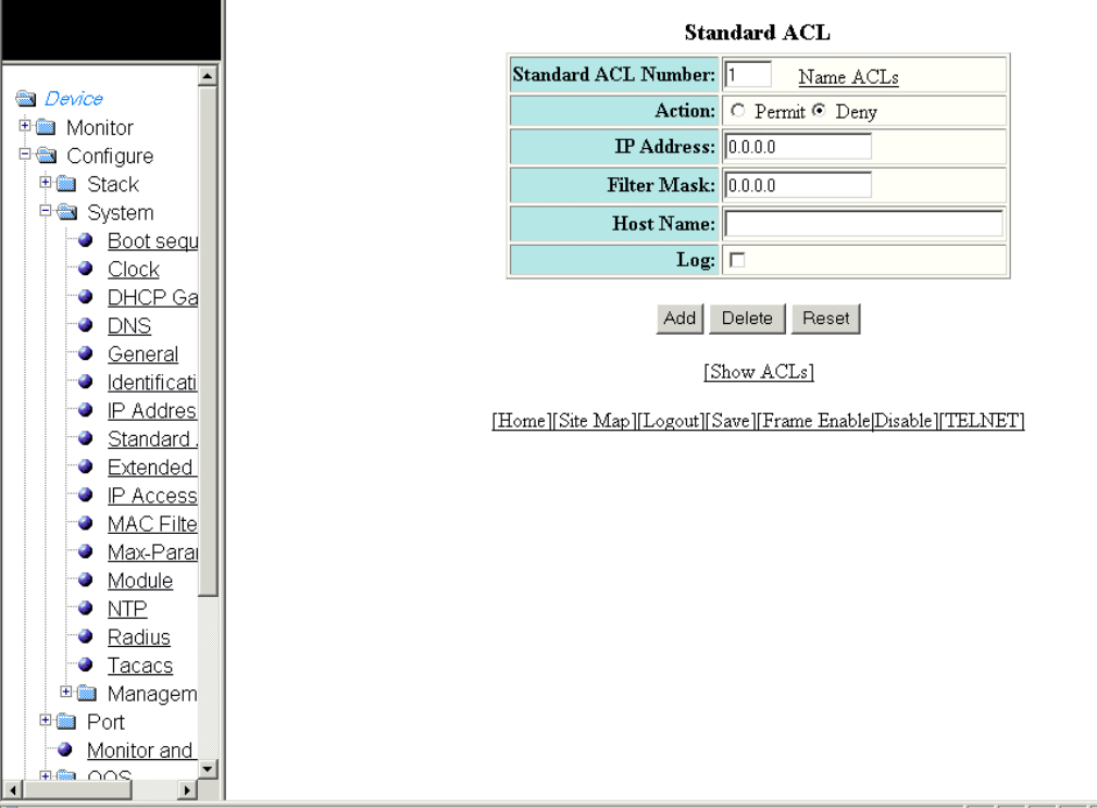 - Configuring a standard ACL