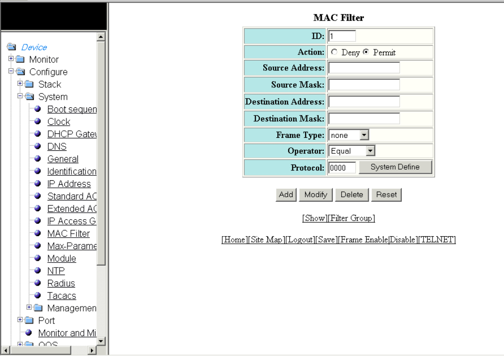 - Configuring the system MAC filter
