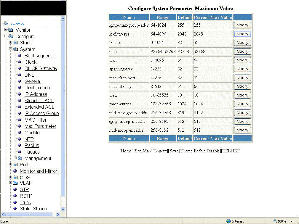 - Configuring the maximum system parameter value