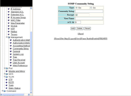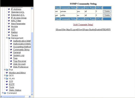 - Configuring an SNMP community string