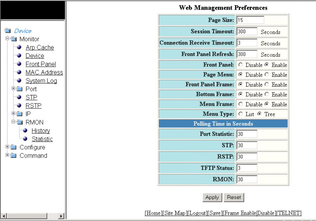 - Configuring the web management preferences