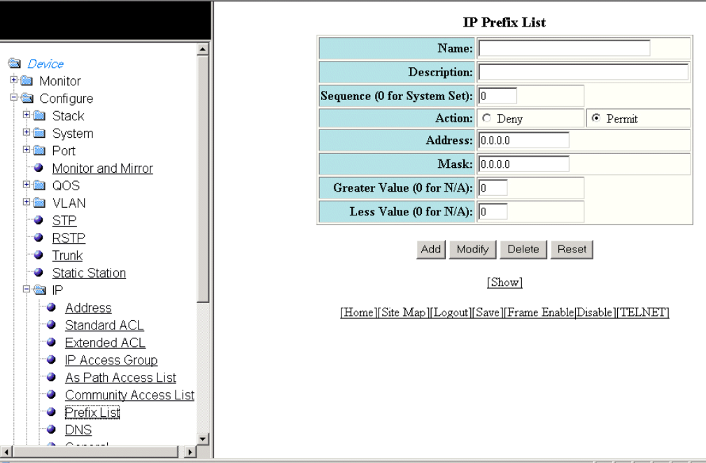 - Configuring an IP prefix list