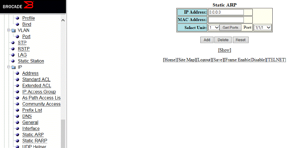 - Configuring a static ARP