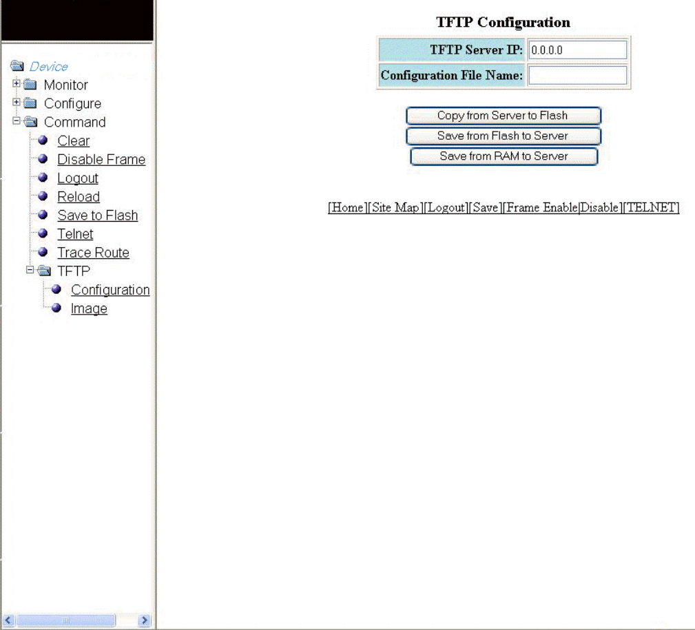 – Click Save from Flash to Server to save the le from the device ash memory to a TFTP server.