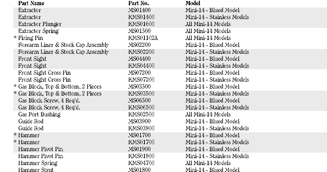 “Blackhawk”, “GP-100”, “M77”, “Mini Thirty”, “Mini-14”, “Old Army”, “P90”, “P93”, “P94”, “Redhawk”,