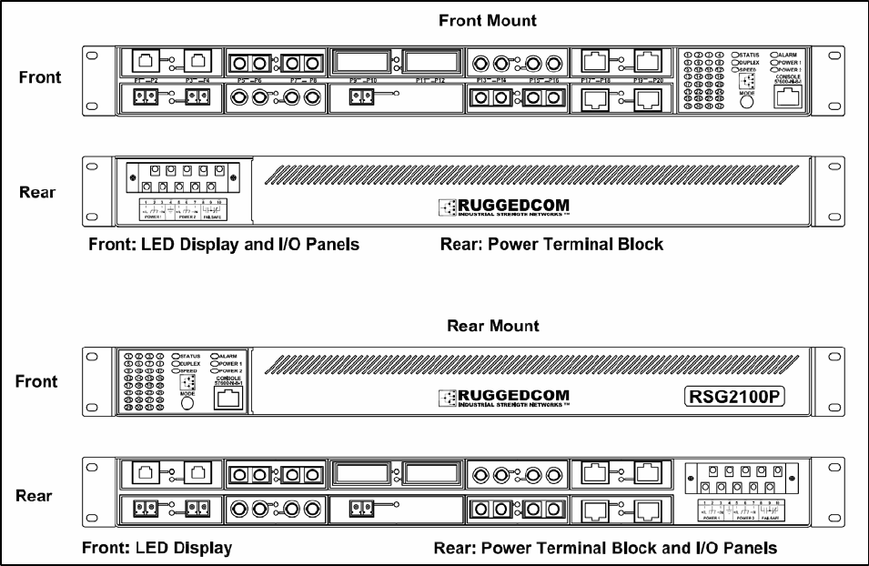 Figure 2: RSG2000 Series Rack mount chassis orientation options – Front and rear mount..........10
