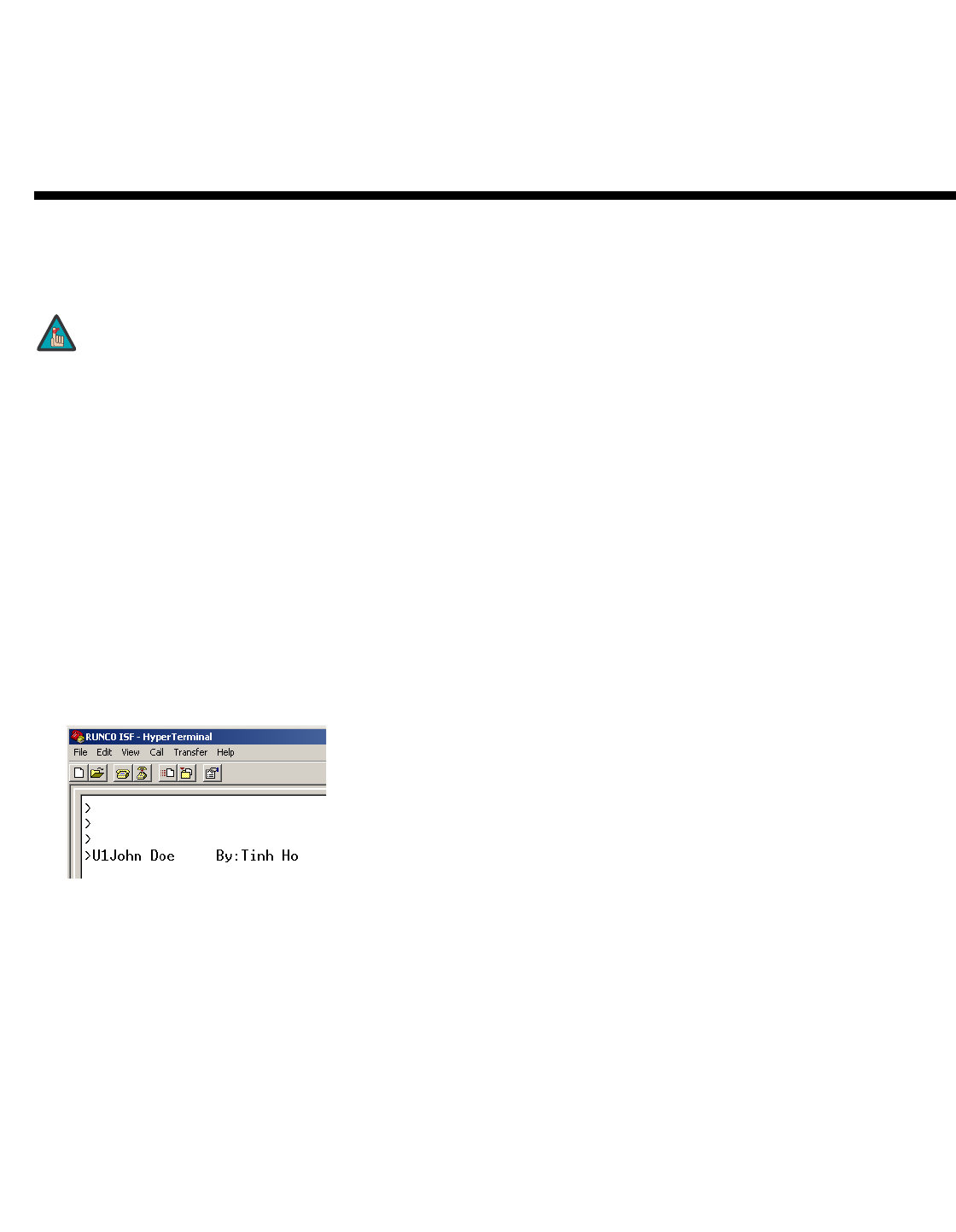 5. In the HyperTerminal window, at the command prompt (>), type U1 followed by the