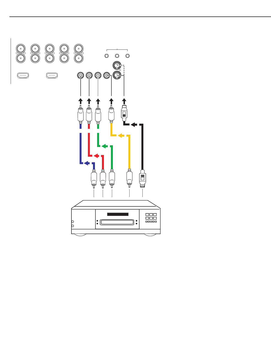 Inputs: (1) Composite; (2) S-Video; (1) Component; (2) HD-R (Pr), G (Y), B