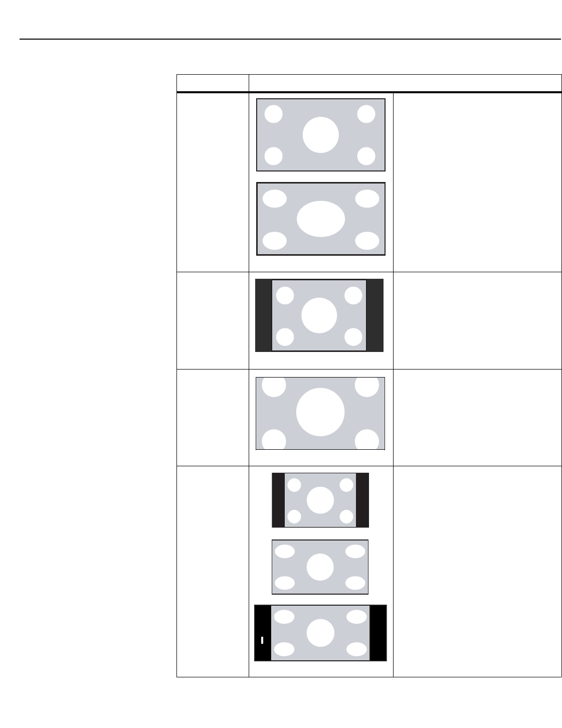 Aspect Ratios: 4:3, Letterbox, 16:9, IntelliWide, Cinema, IntelliWide 2.35