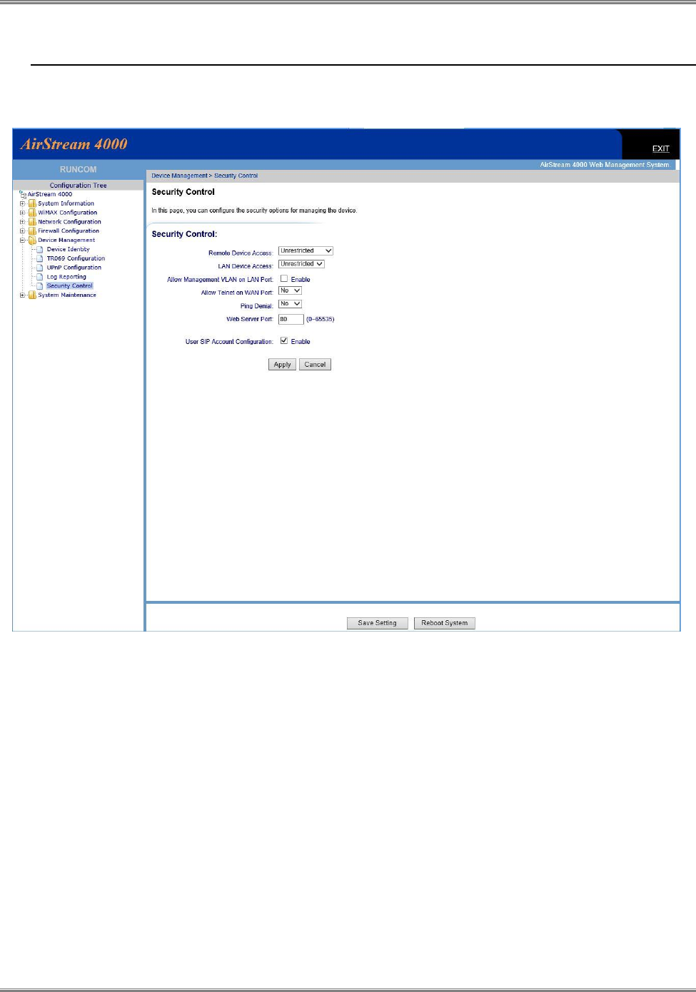 There are options to block, restrict or allowed access to the CPE device from LAN side and / or WAN side.