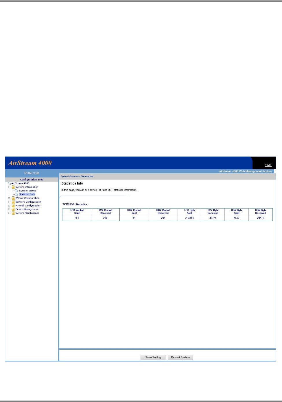 The WiMAX status and information page includes important information which assist operator and installer to identify