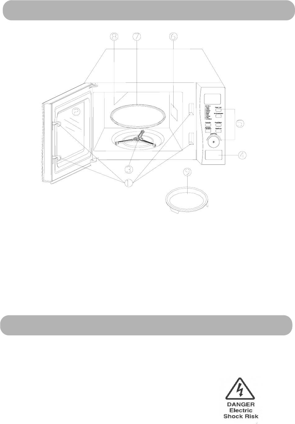 The microwave oven will work using an ordinary household electrical socket. Inside the