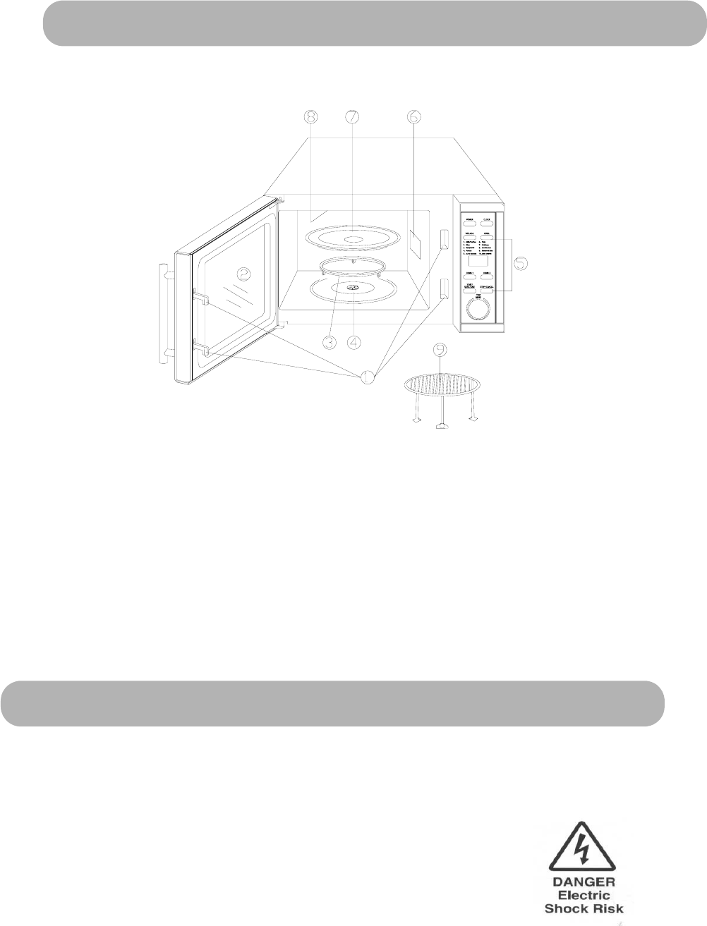 ¾ Keep the microwave, cable and plug dry, never immerse in water.