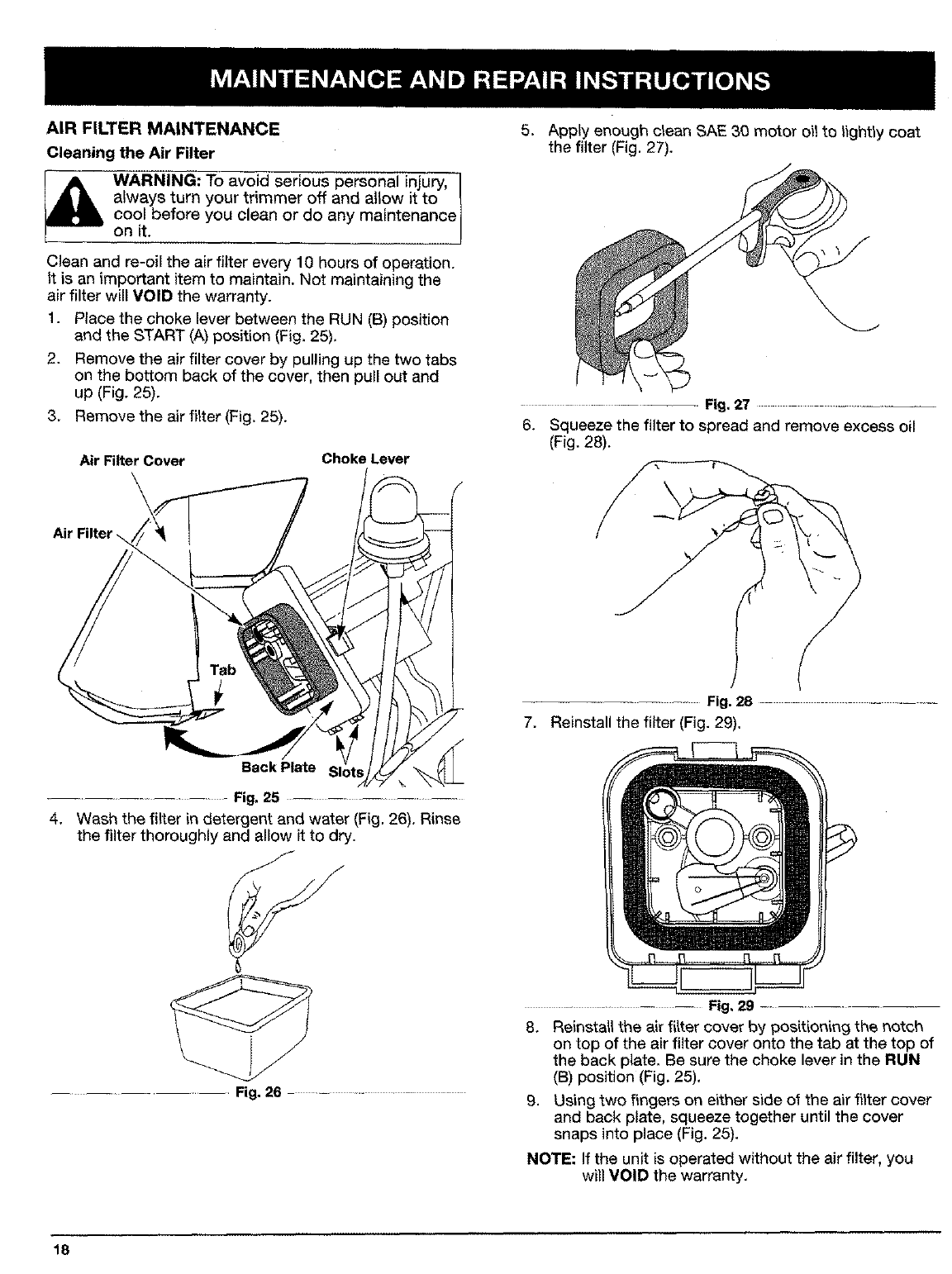 F, Air Filter Maintenance ..................... 18