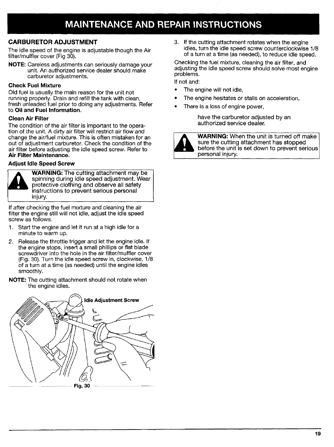 G. Carburetor Adjustment .................... 19