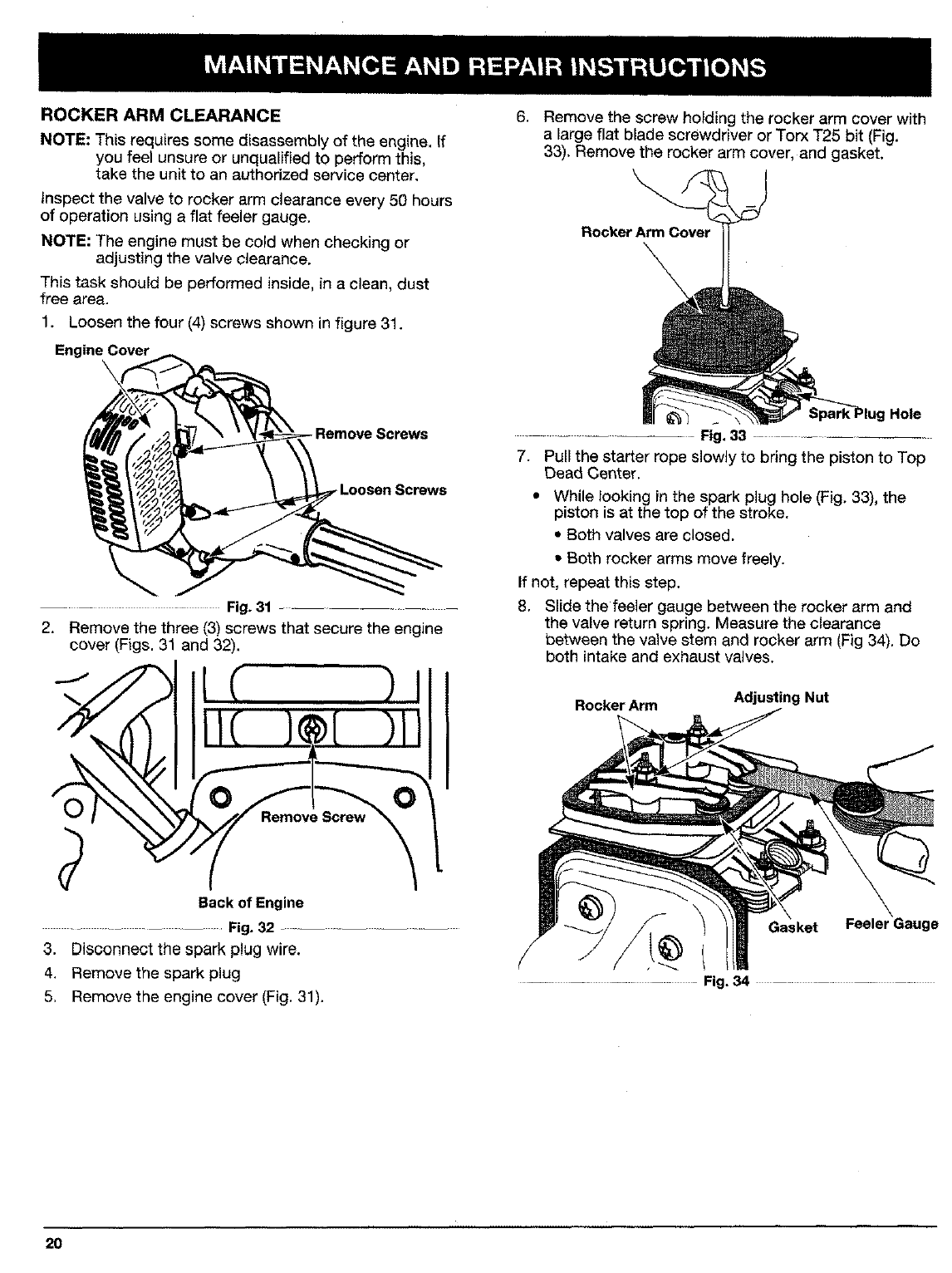 H. Rocker Arm Clearance .................. 20-21