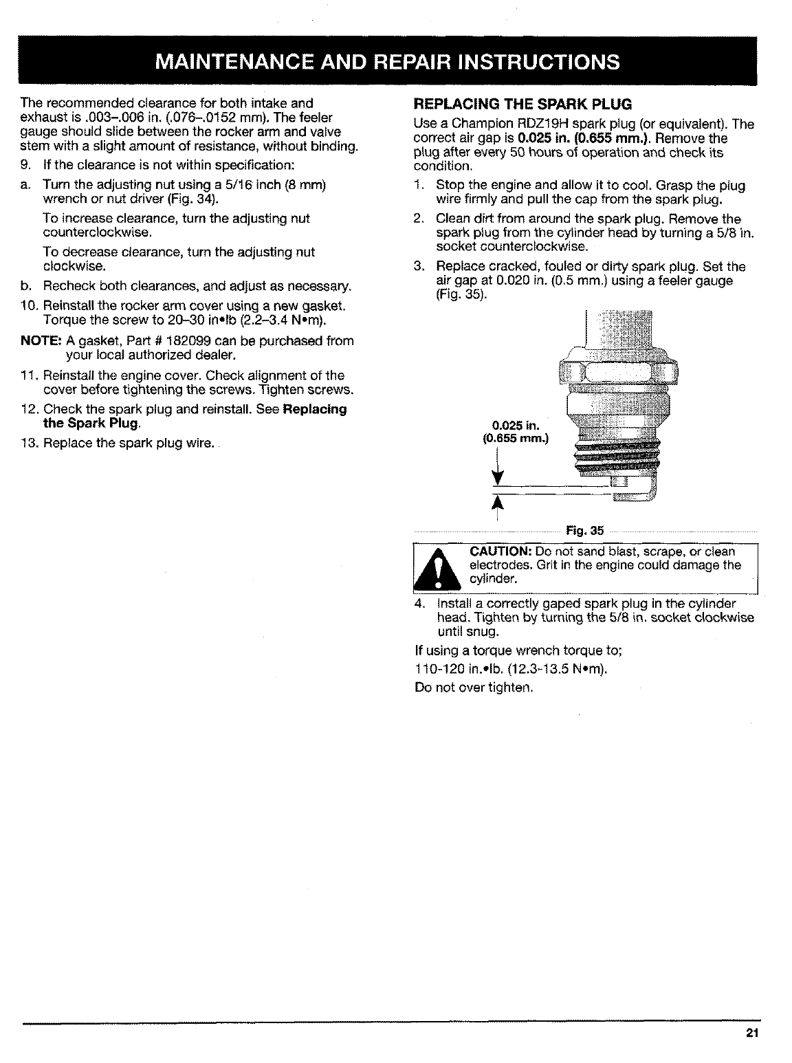 !. Replacing the Spark Plug 21