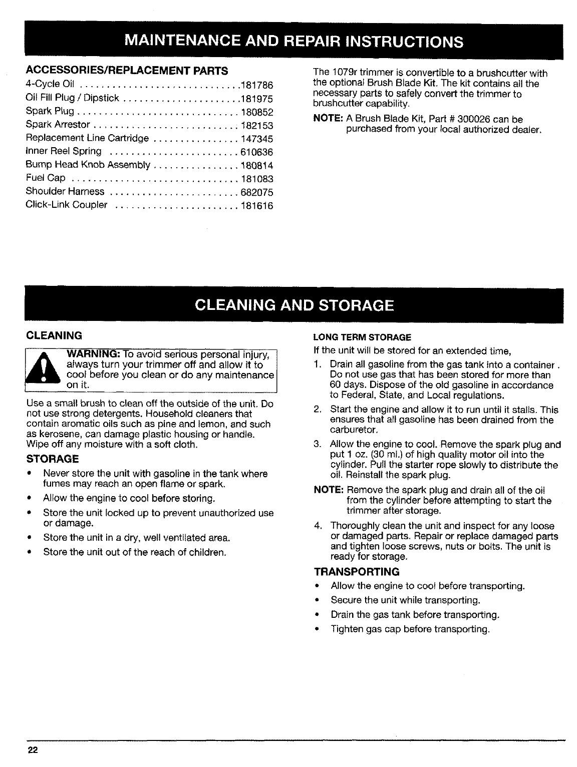 VII. Cleaning and Storage ........................ 22