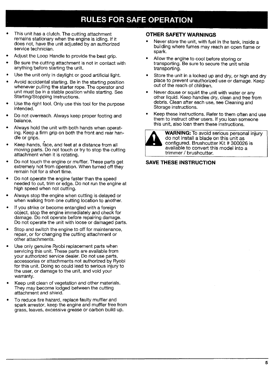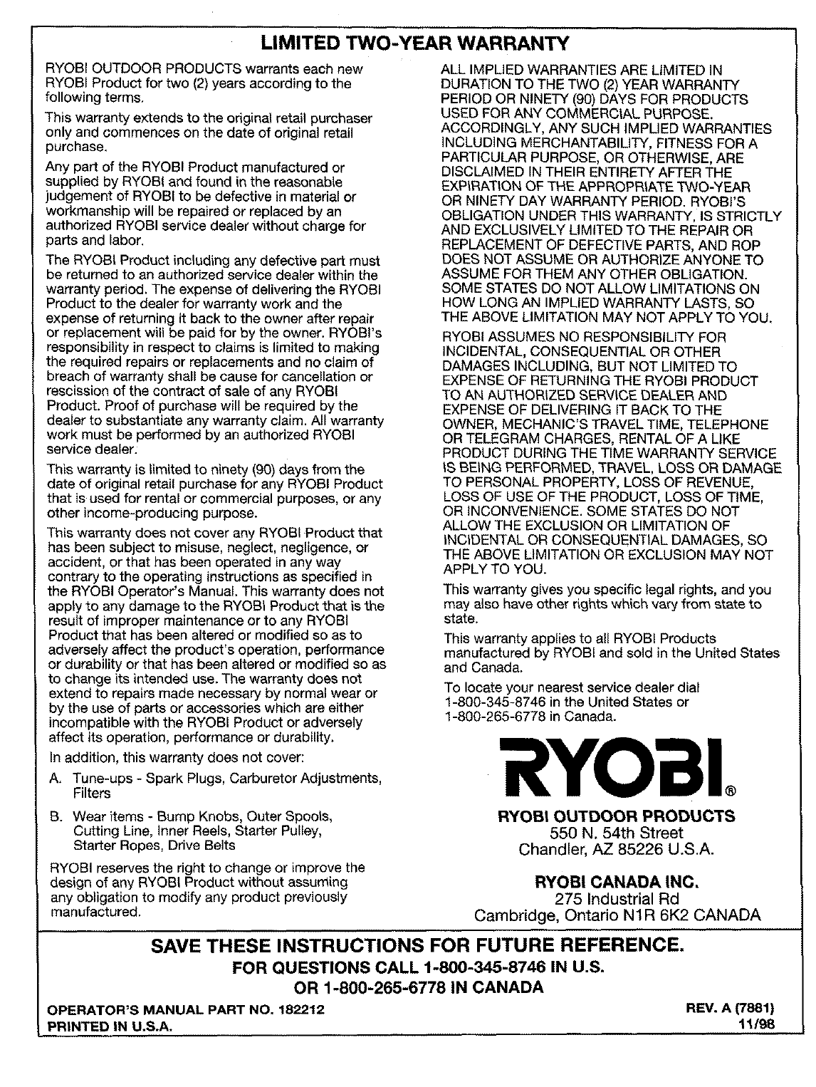 Copyright © 1998 Ryobi Outdoor Products, Inc.