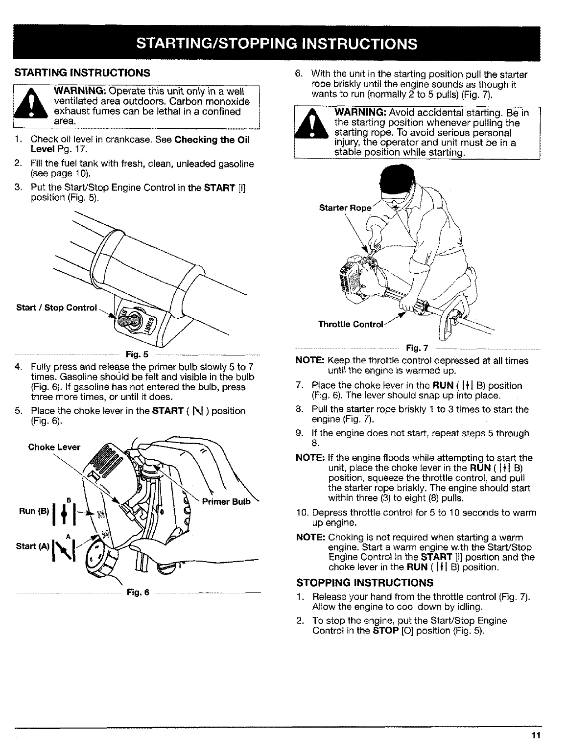 IV, Starting/Stopping Instructions ................. 11