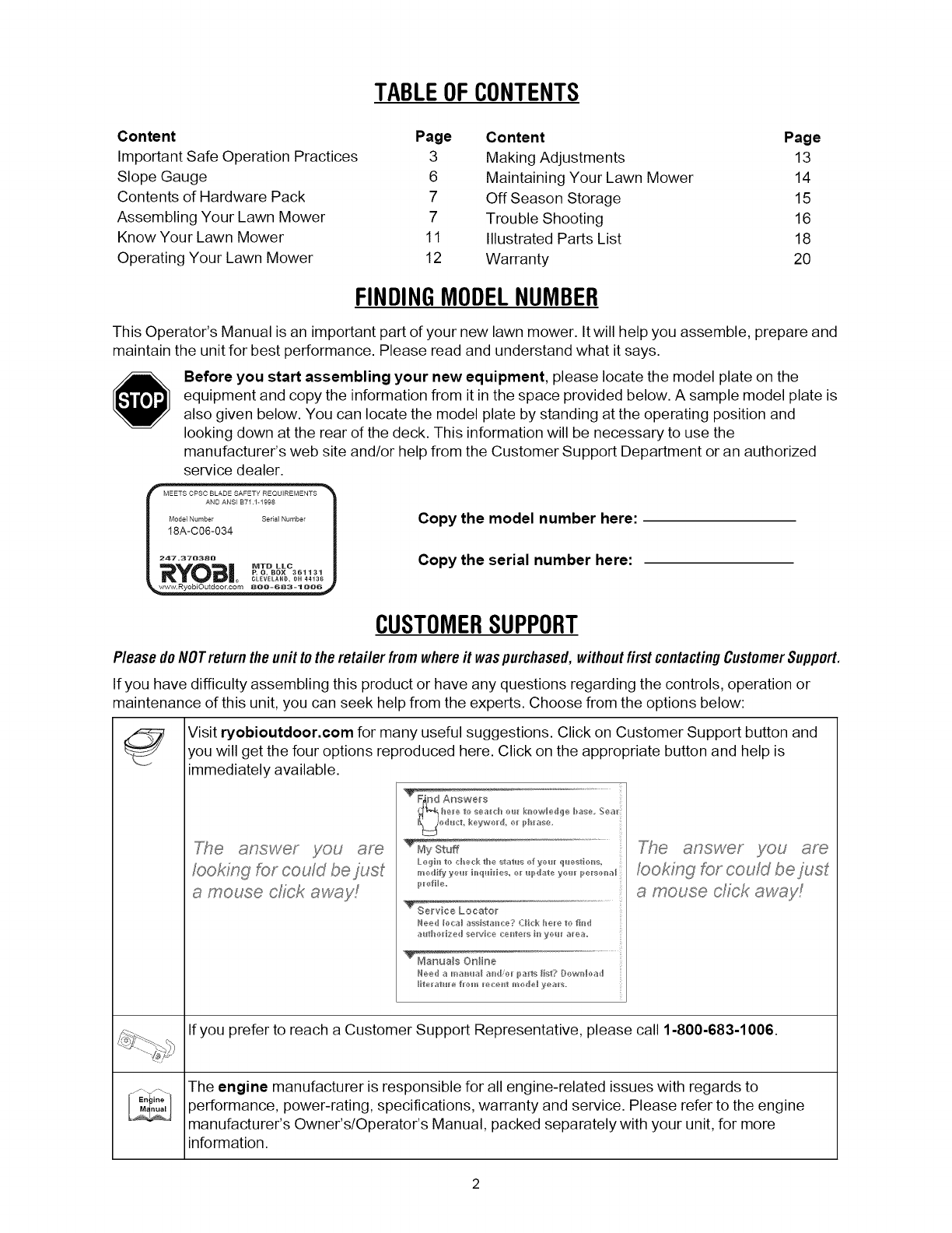 Visit ryobioutdoor.com for many useful suggestions. Click on Customer Support button and