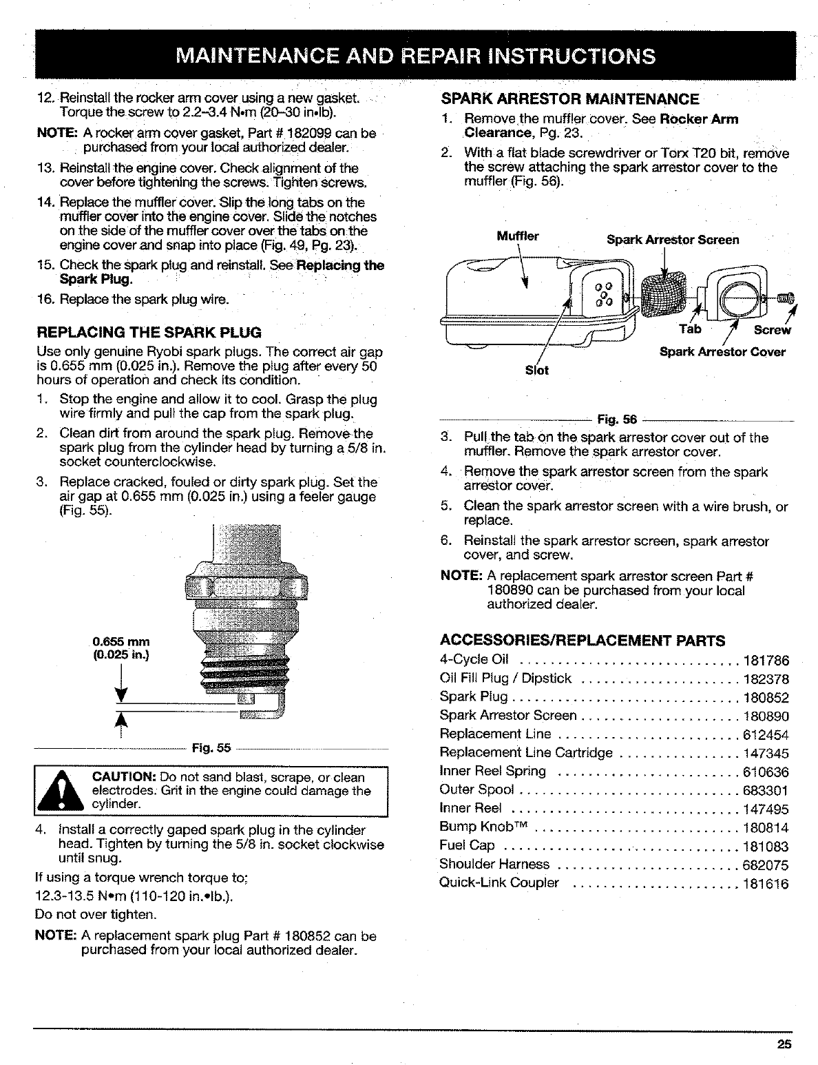Spark Plug Gap ............................................................ 0.655 mm (0.025 inch)
