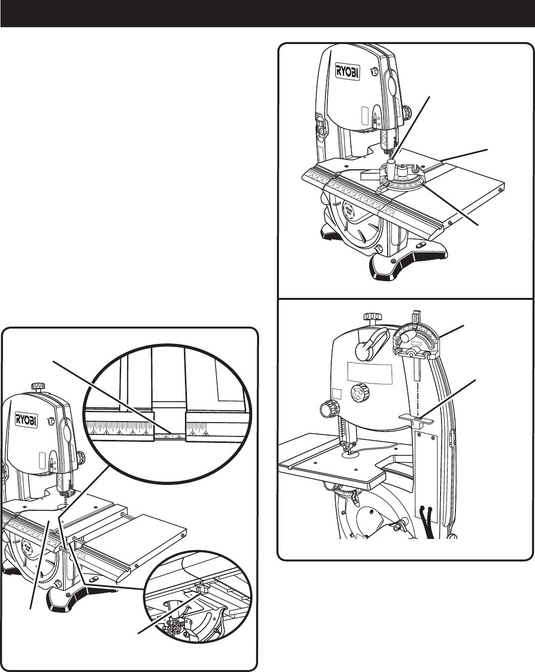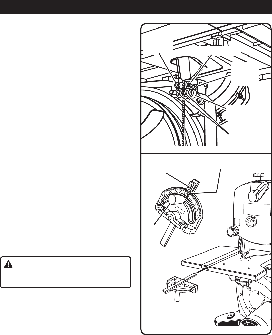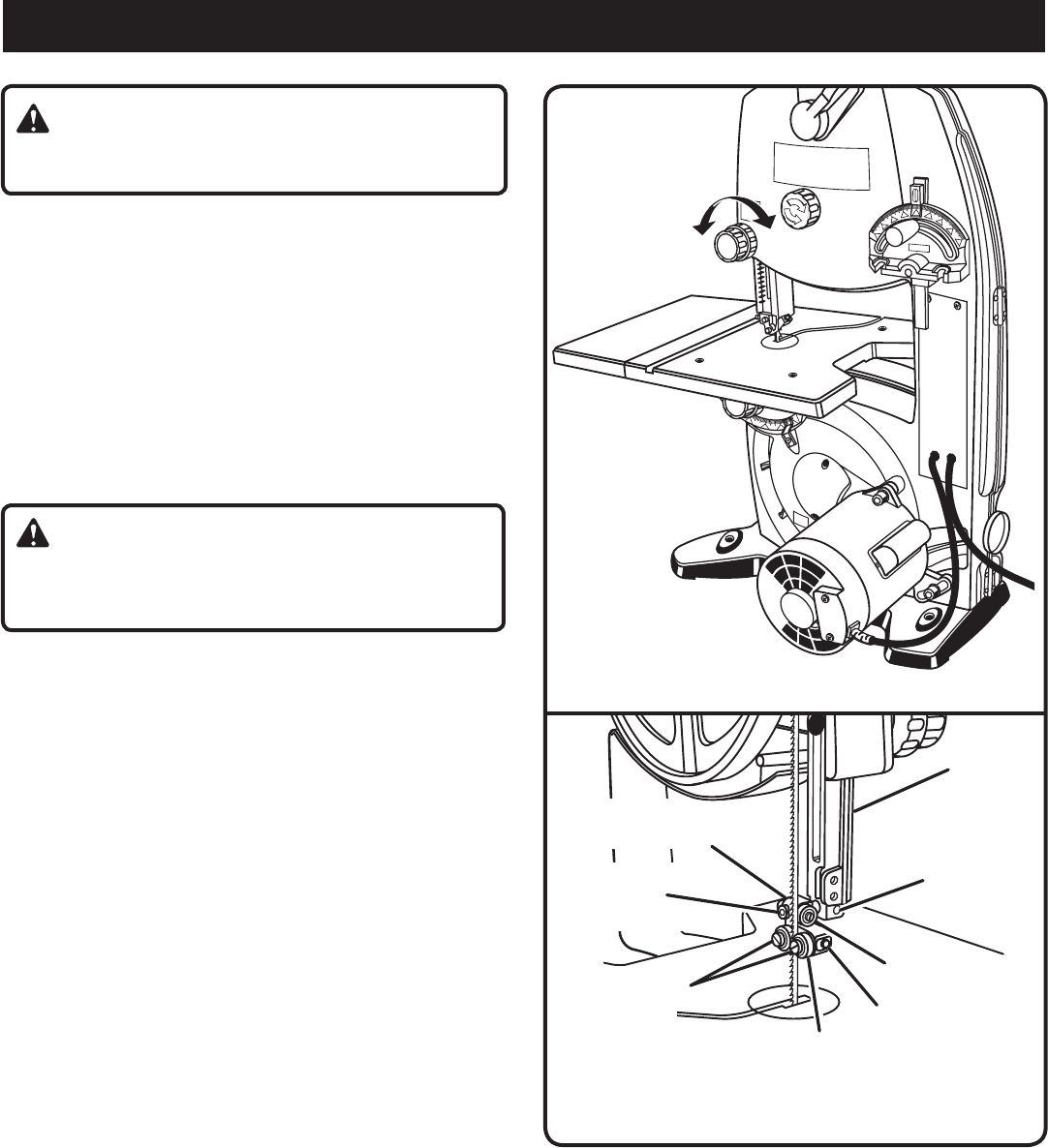 2. Blade guides and bearings 2. Adjust upper and lower blade