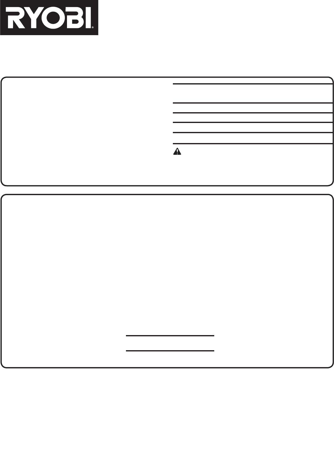 warranty or you may exchange any RYOBI® power tool which does not work properly due to defective workmanship or
