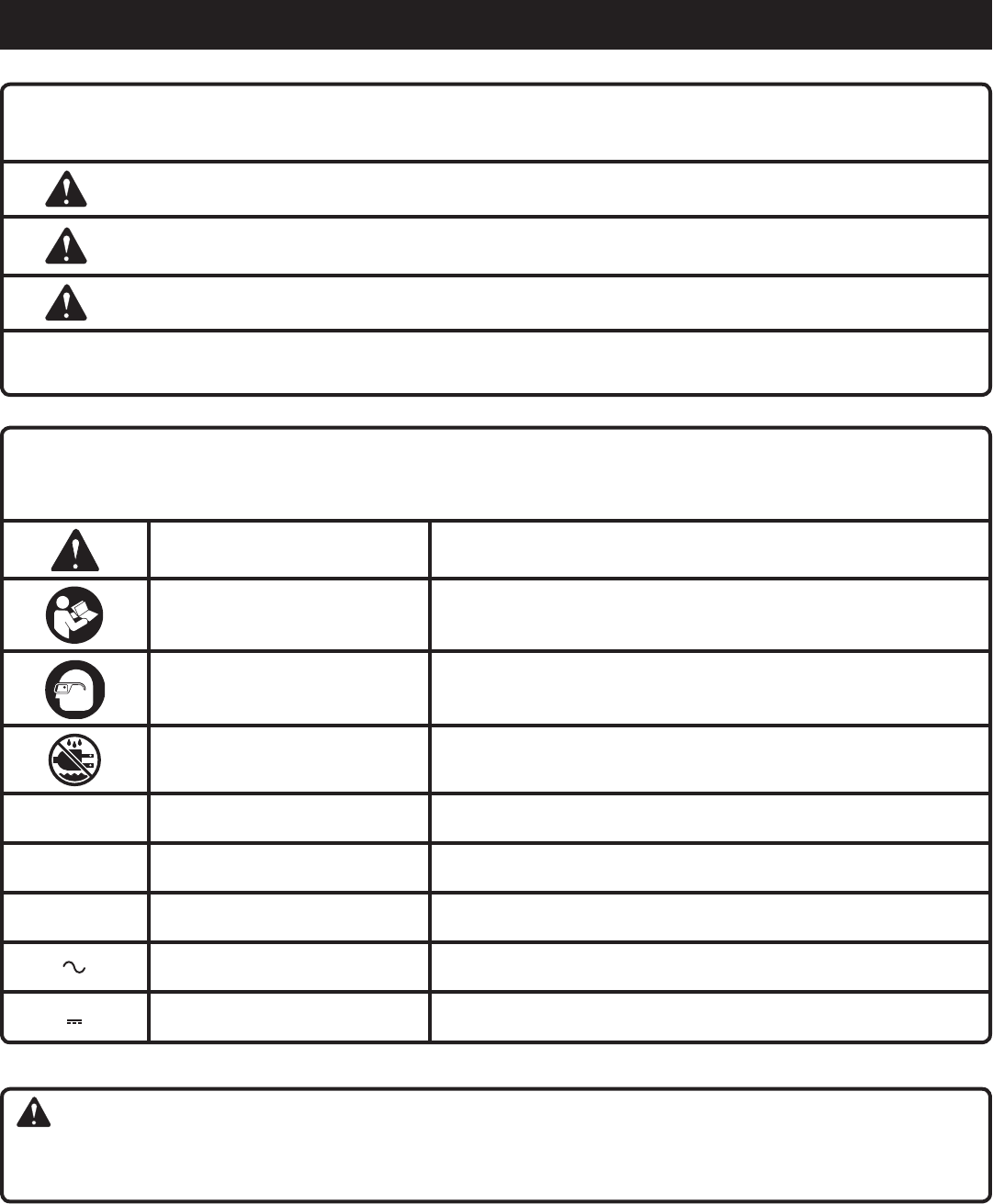 WARNING: To reduce the risk of injury, the user must read and understand the operator’s manual before using