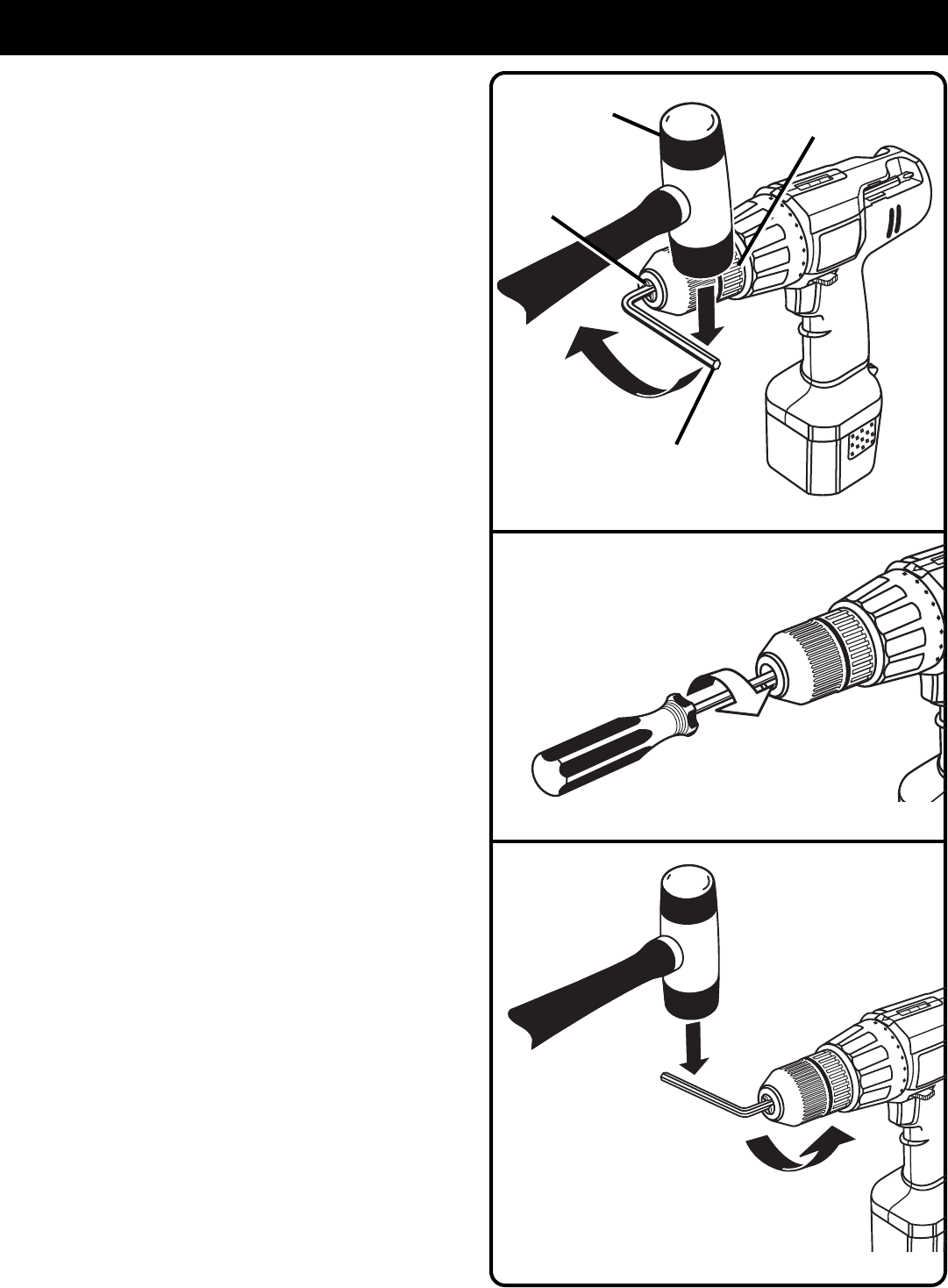 ■Insert hex key wrench in chuck and tighten chuck jaws