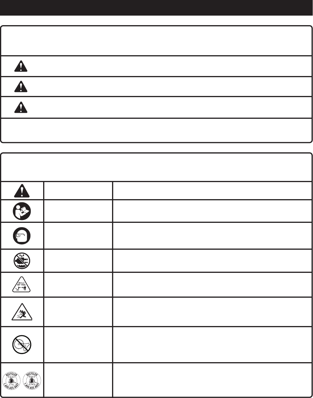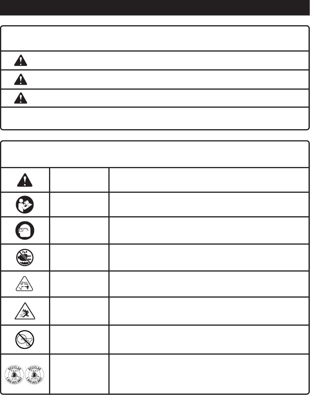 WARNING: To reduce the risk of injury, the user must read and understand the operator’s manual before using