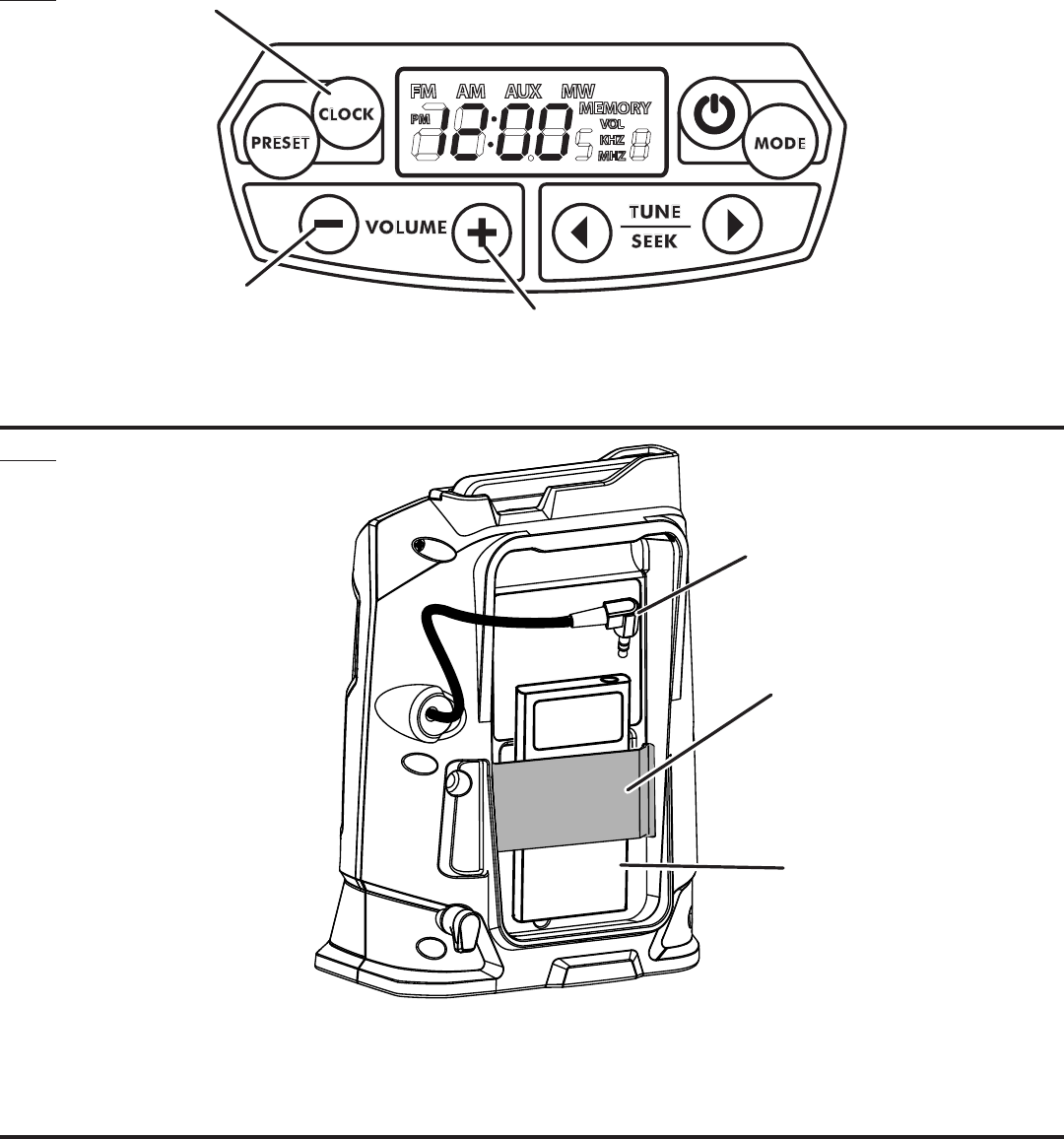 A - MP3 player [not included] (lecteur MP3 [non inclus], reproductor de MP3 [no incluida])