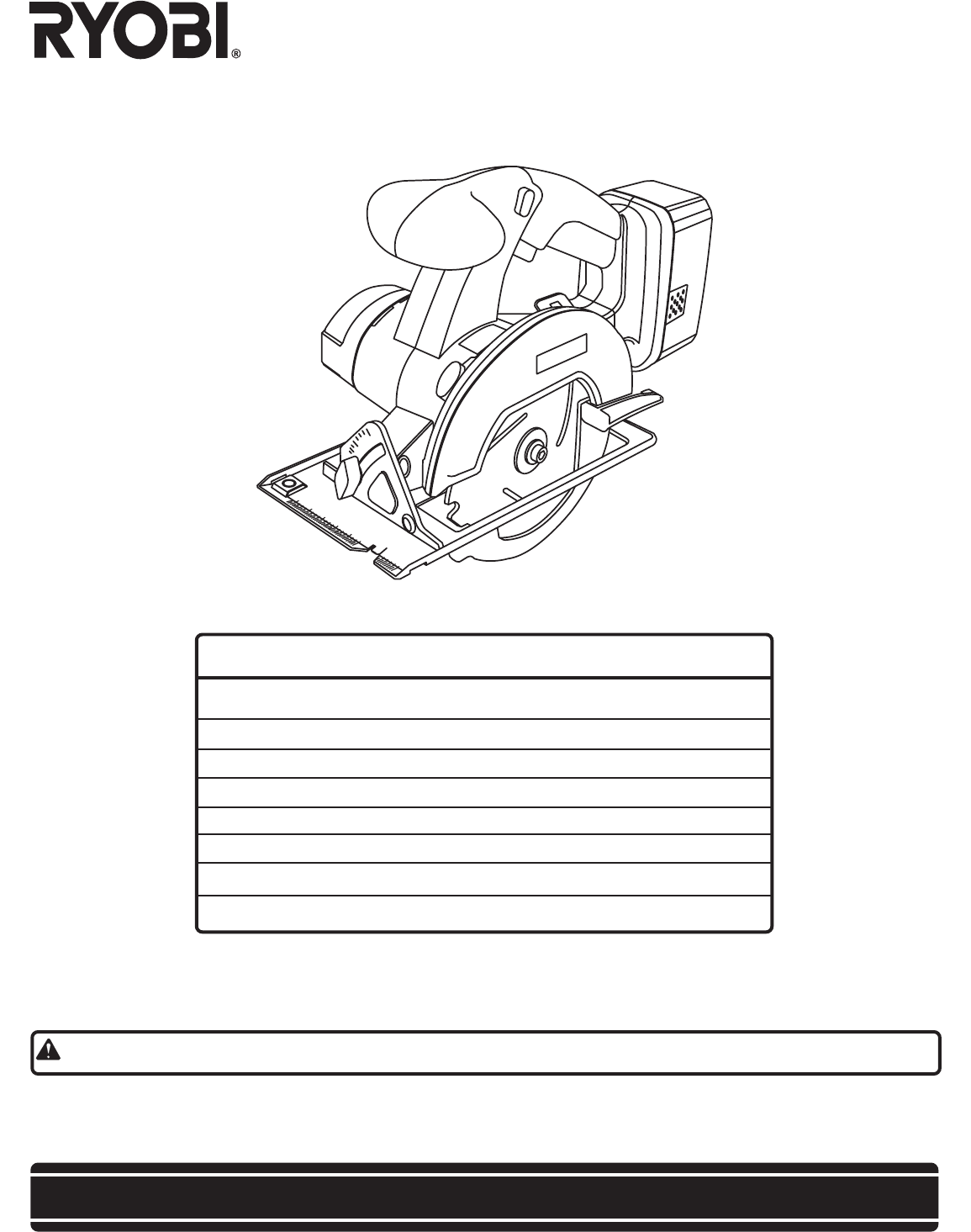 Your new cordless circular saw has been engineered and manufactured to Ryobi’s high standard for dependability, ease of