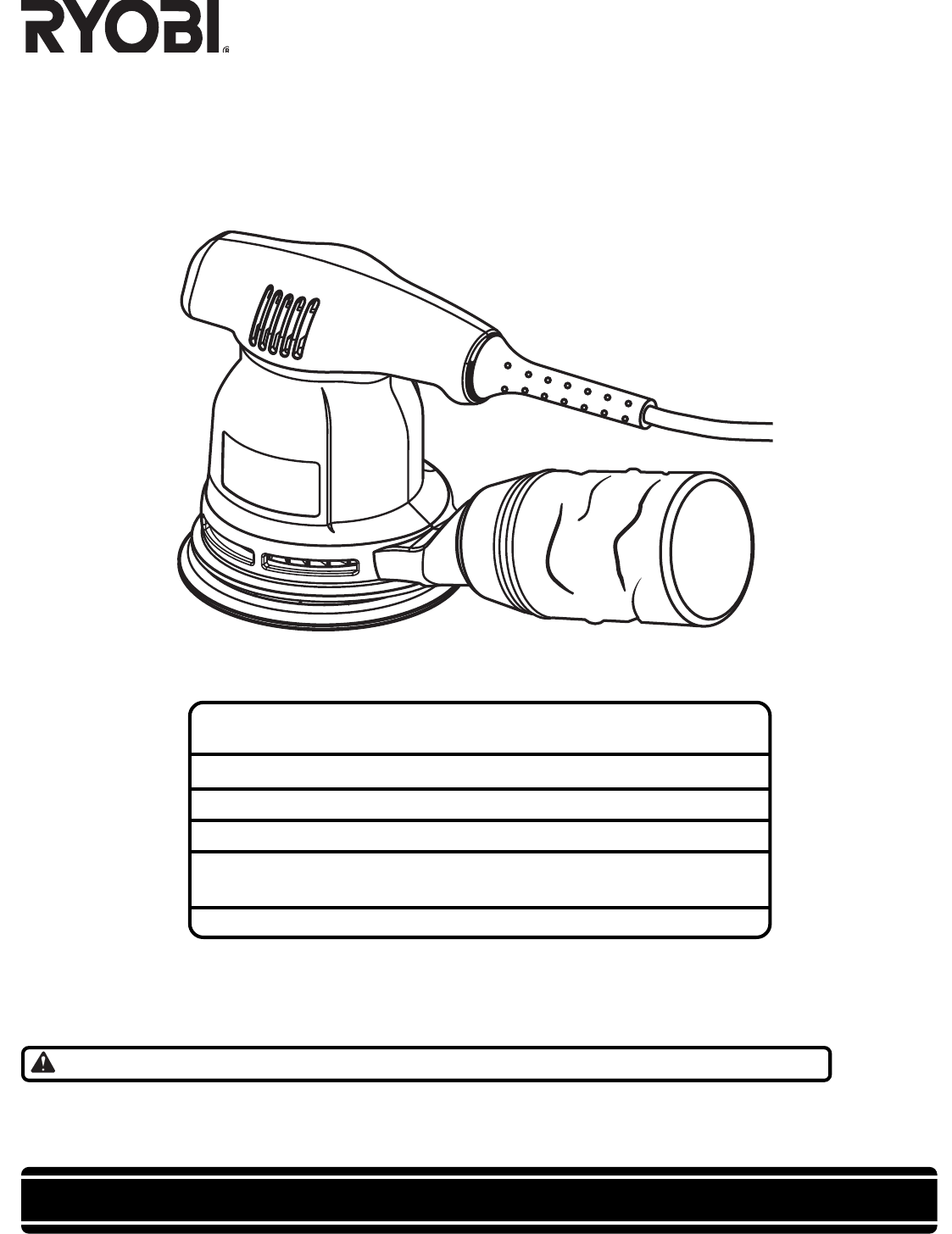 Your new Random Orbit Sander has been engineered and manufactured to Ryobi's high standard for dependability, ease of