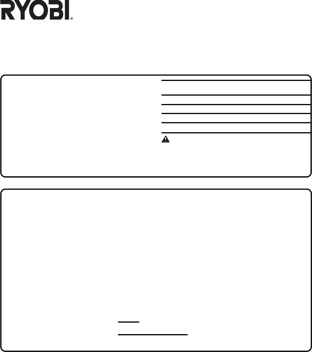 simply contact your nearest Ryobi Authorized Service Center. Be sure to provide all
